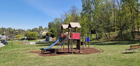 Her finner man en Tufte-park med treningsapparater, flere lekestativer, benker og grillplass.